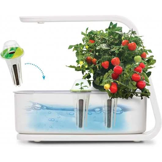 The new AeroGarden Sprout 3-pod indoor garden is the perfect solution to having fresh and flavorful herbs and salad greens at your fingertips any time of year – no sun, soil or green thumb needed! With its sleek and modern new design, powerful LED grow light and silent water pump, you’ll love growing basil, oregano, bok choi, romaine lettuce and more easily and quickly! Just drop in the seed pods, add plant food and water and you’re good to go. Plus you’ll be ready to harvest five times faster than in traditional soil gardens. So let’s get growing!