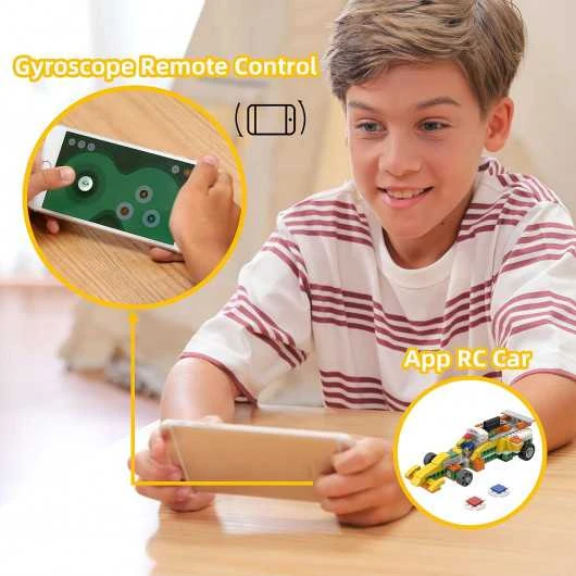 The STEM building toys features 2 sensors. When kids play the remote control toys need to consider factors like angles, speed, and distance. It allows children to apply Mathematics and Science knowledge to real-life situations.