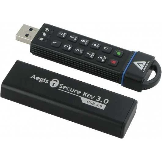 Aegis Secure Key 3.0 is a 120GB USB flash drive that features a numeric keypad and 256-bit AES hardware encryption to ensure maximum security for all your data. It is compatible with Windows, Linux and IOS devices and has an IP68 protection rating that is water and dust resistant.