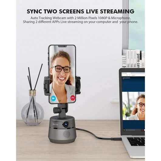 It is an easy-to-use device, it has gesture and voice control function to stop or start face tracking. It does not require any application or camera of your cell phones, just plug it into your computers and use it as a webcam or fix your smartphones on its adjustable support and enjoy a video conversation or live broadcast on YouTube, TikTok, Instagram, Facebook, Zoom and etc.