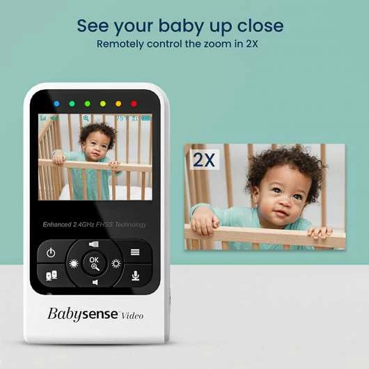 Have a peace of mind – Our Baby Monitor with Camera allows monitoring your baby’s sleep with the advanced 2.4 Inch High Quality Color LCD Display, coupled with Enhanced 2.4GHz FHSS Technology. Babysense baby video monitor provides high quality and stable streaming, secure hacking-free connection and crystal clear digital vision & sound.