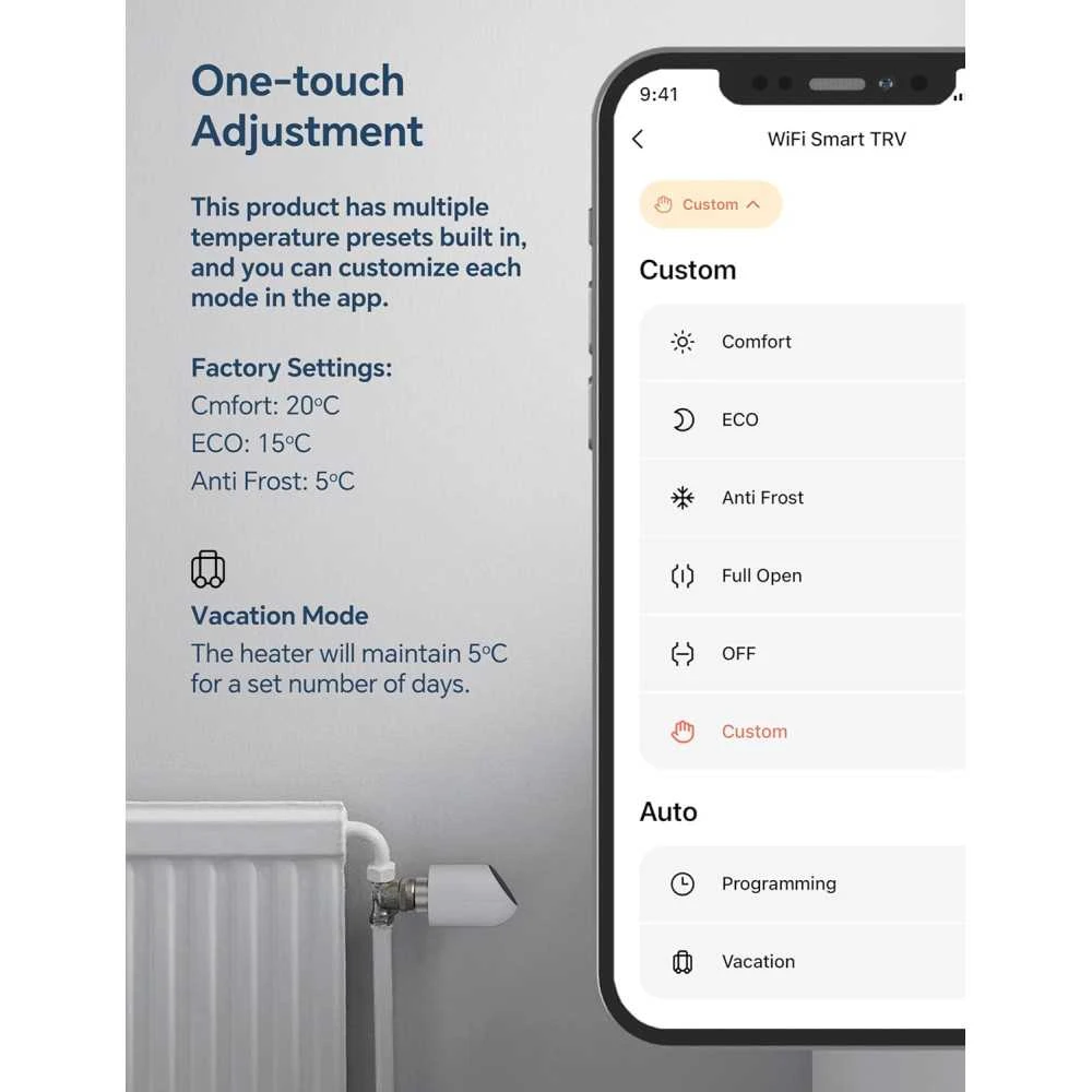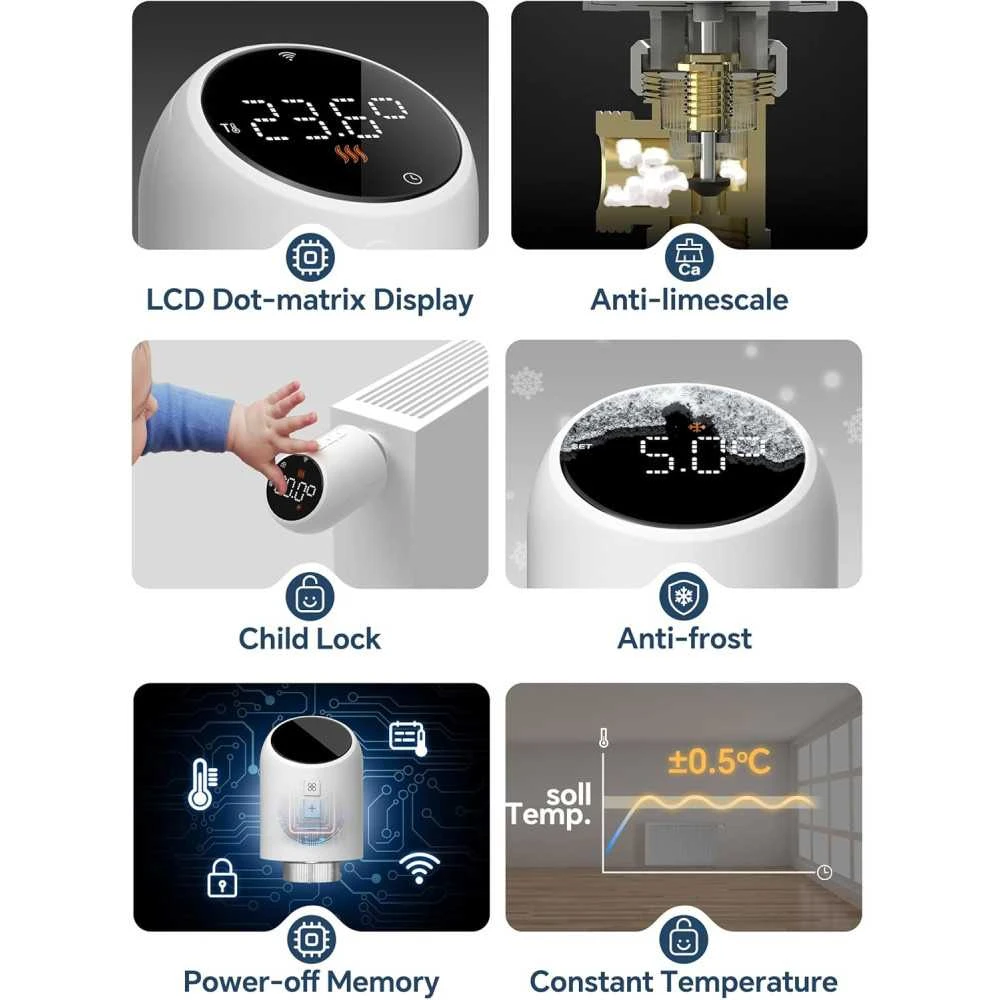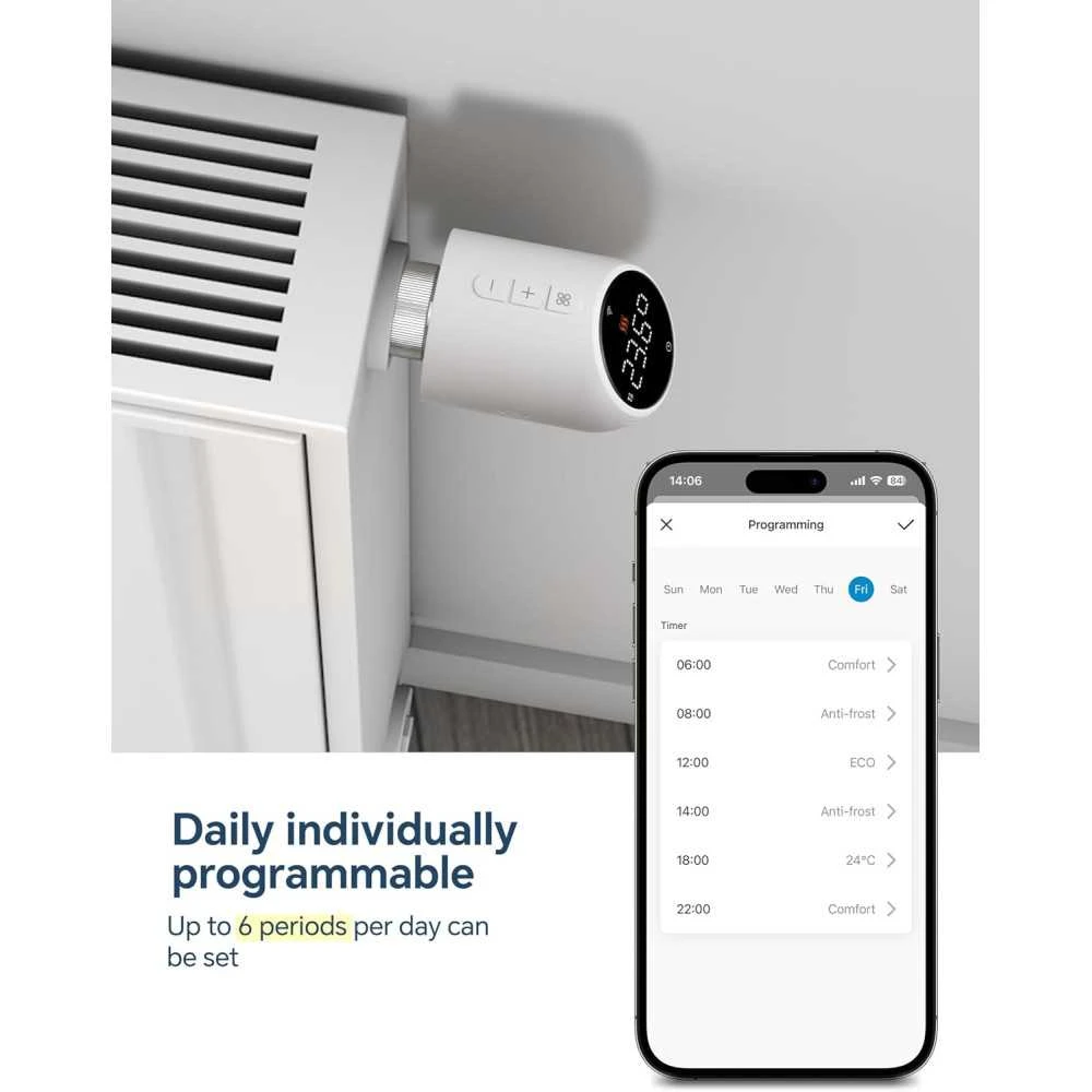 Flexible control: Either adjust directly on the thermostatic head, or control it remotely via the Tuya Smart/Smart Life app, or free your hands by controlling the room thermostat by voice control via Alexa/Google Assistant etc