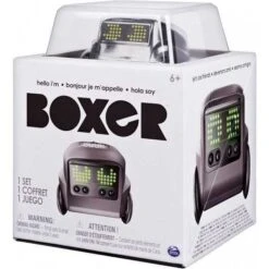 Meet Boxer: your real robot pal! This plucky little bot comes to life right out of the box and is raring to go – no assembly required! With a love for fun, your new buddy is ready to play! To start, place one of the 10 activity cards (included) in front of Boxer. Once he rolls over the card and scans it, the fun begins! Play games like Bot Bowling, Paddle Bot and Go Kart, or use the interactive ball accessory (included) to play a fast-paced game of soccer! As you play with this loveable bot, you’ll get to know his quirky personality. Sometimes happy, sad, grumpy, or even sleepy, Boxer displays a full range of emotion. Interact with him in multiple ways: use the included remote control to race Boxer around and do tricks; download the free app to your phone to discover brand new games; or get hands-on! Equipped with multiple IR sensors, an internal rechargeable battery and more awesome tech features, Boxer responds to your hand movements and interacts with you in silly ways. With real-life responses, funny expressions and sounds, this little guy makes one hilarious sidekick! Discover Boxer: Enormous Play. Tiny Bot.