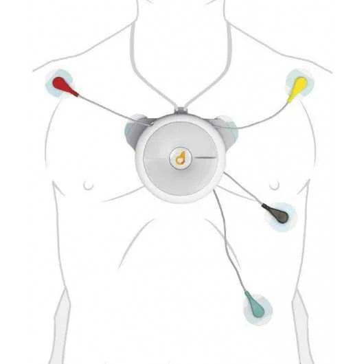 To record a medical grade ECG you need to record with electrodes the heart electrical activity at specific locations on your chest. The image-processing guides you to the make correct electrode’s placement by showing your own chest picture with virtual marks placed where you should stick the electrodes. You just need to imitate your own image to get the perfect ECG. The patented cable exit system prevents you from inverting the cables. You can charge the device directly in the case. It recharges by contact while resting inside its case, where you can find the electrodes to record your ECG.