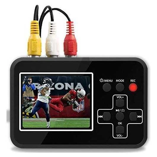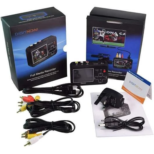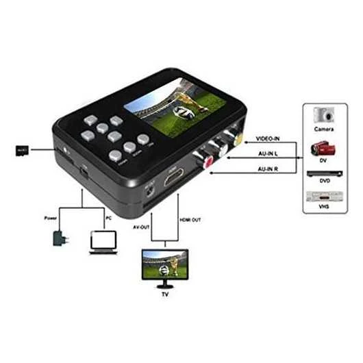 It is a device made of sturdy quality materials and has several buttons on the top of the device to navigate through the functions offered including a record button, mode, power, volume control, fast forward or rewind and a play and pause button. It has several inputs such as RCA input, HDMI and AV output, USB port for transfer and power. It comes with several accessories such as RCA to RCA cable, RCA to AV cable, USB cable and AC adapter. It is small, light and can fit directly into your bag so you can use it wherever you are.