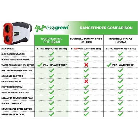 Easygreen is equipped with technology that helps golfers judge distances from the flag or an obstacle, this slope compensation technology adjusts the distance in meters according to the slope of the course. This is a feature that can be disabled during competitions.