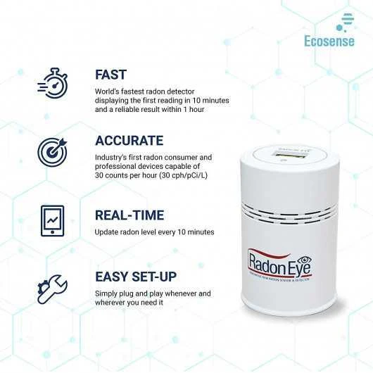 Radoneye is the world’s fastest home radon detector provides the first reading in 10 minutes with a plug and play setup, reliable result within 1 hour, and app connectivity for easy monitoring & general consumer use. Just plug in and use whenever and wherever needed.