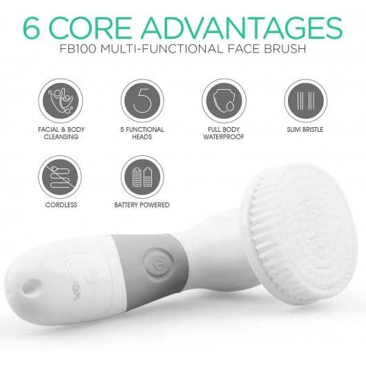 The VOYOR FB100 has 5 different brush heads for your skin’s well being, each brush has a unique function including a 0.08mm and 0.06mm brush for normal and sensitive facial skin, a body brush, a makeup removal brush and a dead skin brush. It is a 360° rotating brush that can meet all the needs of cleaning your face and body, it is suitable for all skin types whether normal, dry, oily or sensitive and that for women and men.