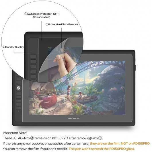 Thanks to the fully-laminated technology adopted, there is no air gap and visually the parallax will be reduced to the lowest level. The pre-applied AG screen film protects your eyes and increases the paper-like drawing experience. It also provides an anti-glare experience. The 8192 level pressure passive pen creates more natural lines and is more responsive while drawing. The 60 degrees tilt support can help you to control the line width more easily and shows you how it changes as you’re working with certain brushes.
