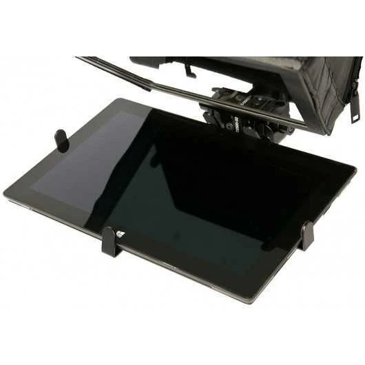 Ikan PT-ELITE-UL-RC is an ideal teleprompter for professional use. It is equipped with a 70/30 beam splitter glass for good text transmission when reading. It has a support for all your cameras and another one for smartphone or tablet. It comes with a 9-button remote control that allows you to control the teleprompter remotely.