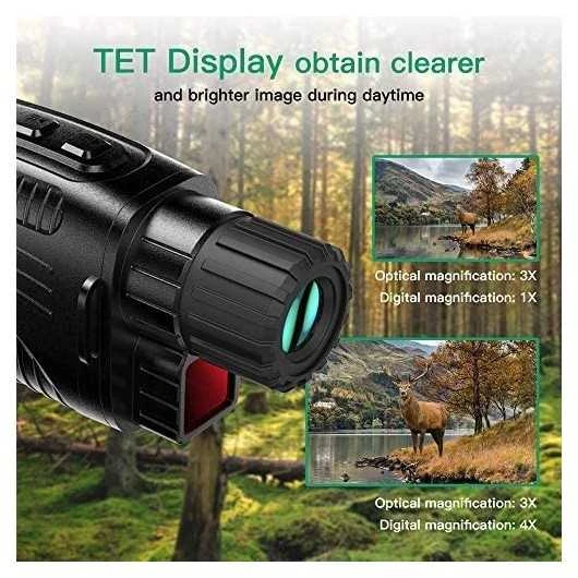 The JStoon JS-02 gives you great, clear vision even in environments without ambient light thanks to a 24mm lens. It has a built-in 850 NM infrared illuminator for a viewing distance of up to 200 meters with a 3X optical and 4X digital zoom. It includes a 1.5-inch TFT display for easy instant viewing of photos or videos recorded during your various activities whether it’s hunting, security, surveillance, guarding, research, wildlife observation, night fishing and more.