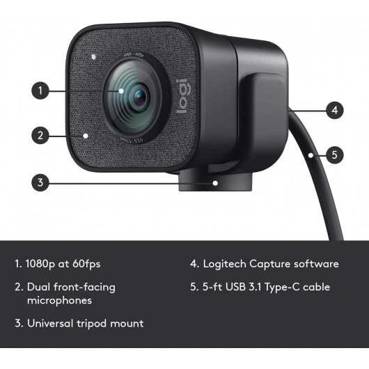 Logitech StreamCam is a webcam with a variety of features that allow you to improve the quality of your video streaming and recordings. It has a speaker that provides clear and authentic sound, a lens with a resolution of 1080p at 60 frames per second.