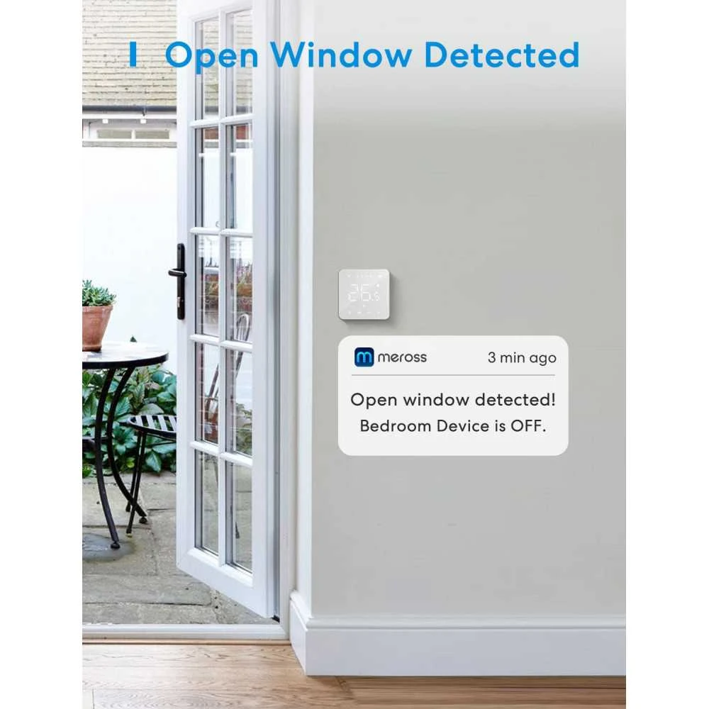 OPEN WINDOW DETECTION AND 5 ADJUSTABLE MODES: When the window opens and the temperature in the room suddenly drops, the connected thermostat will send you a notification to remind you and automatically stop heating for 30 minutes to avoid wasting energy. You can set the WiFi thermostat according to the usage of each room: manual mode, automatic mode, heating mode, cooling mode and energy saving mode.