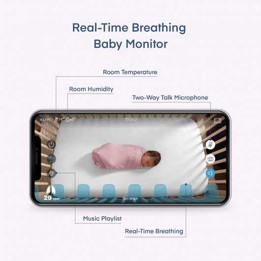 TRACK BREATHING & SLEEP WITH NO WIRES OR WEARABLES: Miku Smart Baby Monitor works with your smartphone to track breathing, movement, sleep patterns, and nursery conditions such as temperature and humidity. Note: Wi-Fi connectivity is subject to individual routers.