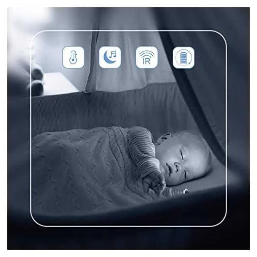 The 4.3″ large screen monitor and digital camera provide an automatic night vision as soon as the light is low. The device also provides built-in lullabies that you can set for your baby to help him sleep at night. You can also monitor the temperature in your baby’s room at all times and be alerted when it is too hot or too cold according to the temperature you set up. You can also save the battery energy of the monitor by switching on “power saving mode”. The screen is automatically turned off when the baby is asleep but turns on automatically when camera detects the baby crying.