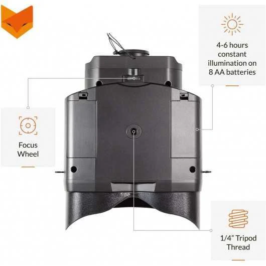 It is made of sturdy materials and designed to be easy to use, it has three buttons to control power, zoom and IR lighting with 7 lighting levels that can be used in different conditions, as well as a focus wheel to ensure a better image quality. It is an ideal camera for hunting, security, surveillance, guarding, research, wildlife observation, night fishing and much more.