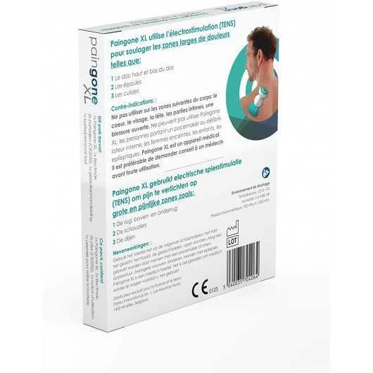 The Paingone XL uses TENS electrostimulation therapy to relieve all of your chronic pain while avoiding the use of medication that can cause side effects on your body. This technology aims to stimulate the brain to produce endorphins, which is a painkiller secreted naturally by the human body and which is delivered directly to the painful area. It offers fast relief with 3 different pulse modes and 12 intensity levels to effectively treat pain and match your needs. It features automatic shut-off technology after a 15-minute treatment, has already been the subject of several clinical studies and is approved by the ANSM or Agence Nationale de Sécurité des Médicaments et des Produits de Santé.