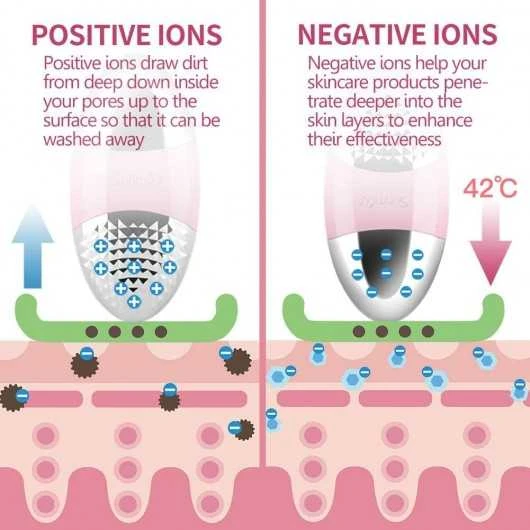 The negative ion treatment has a 42°C heat function to stimulate blood circulation and helps your beauty products penetrate deeper into the skin layers. The positive ion treatment draws out all the dirt from inside your pores to the surface of your skin making it easier to clean. The brush side of the device smoothes the appearance of fine lines and wrinkles, reveals the skin’s youthful glow, refines and evens out skin tone and removes excess fluid to reduce puffiness and diminish the signs of aging.