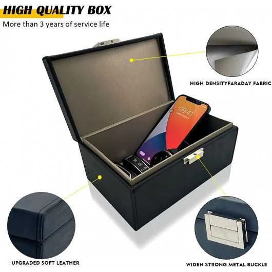 STYLISH & PRACTICAL – This faraday box is made from the finest materials, externally made with PU leather and internally lined with a premium RF shielding. This stylish and sophisticated box will fit well in any area of your home with a prestigious and elegant feel to it.