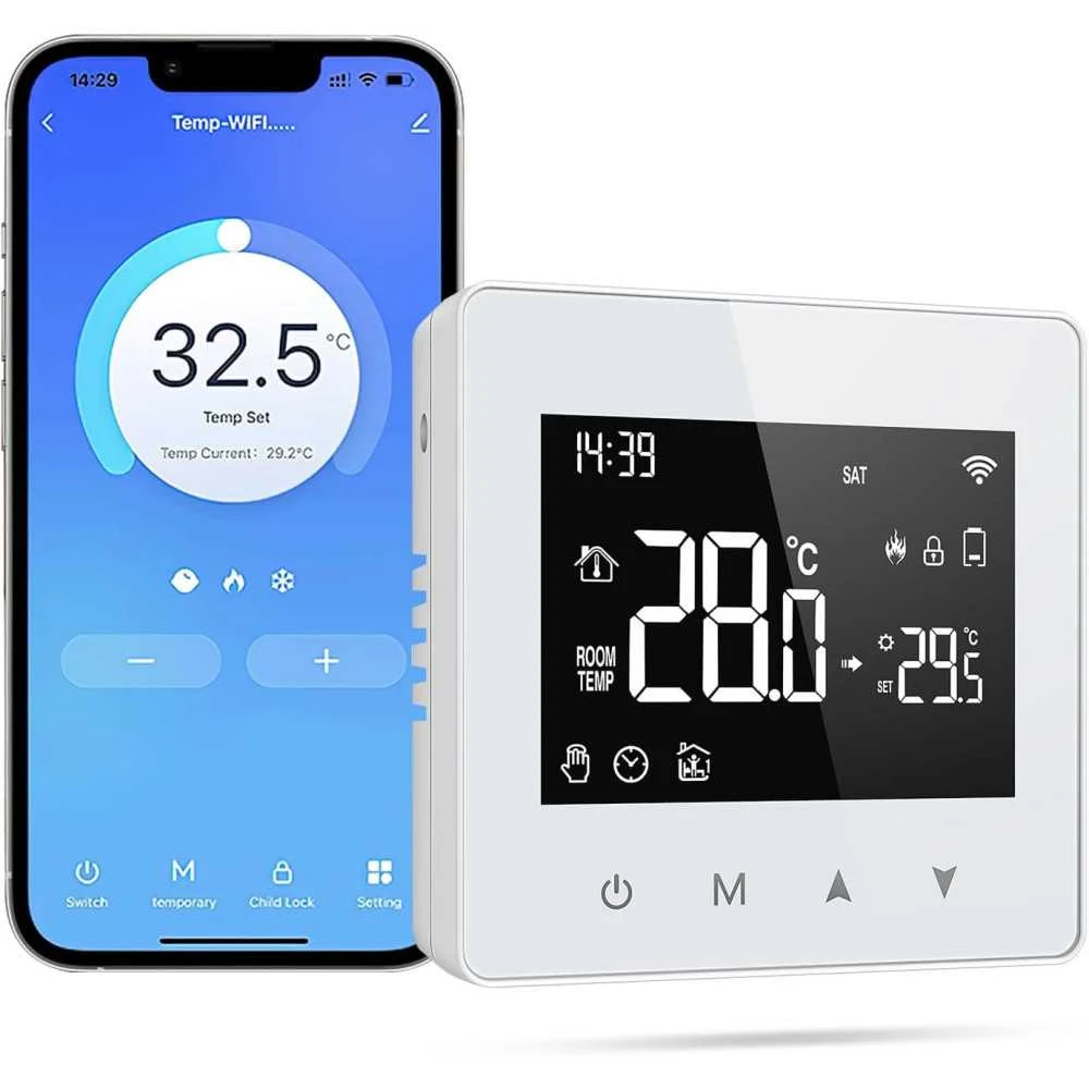 【Digital Thermostat with Large LCD Touch Screen】WiFi thermostat with LED touch screen makes it easy to adjust the temperature with just one click. Sensitive touch buttons regulate the temperature of the thermostat,thanks to the APP data statistics page, you can clearly see the time the boiler is turned on and the temperature curve of your home, as well as the graph of daily or monthly curve statistics.