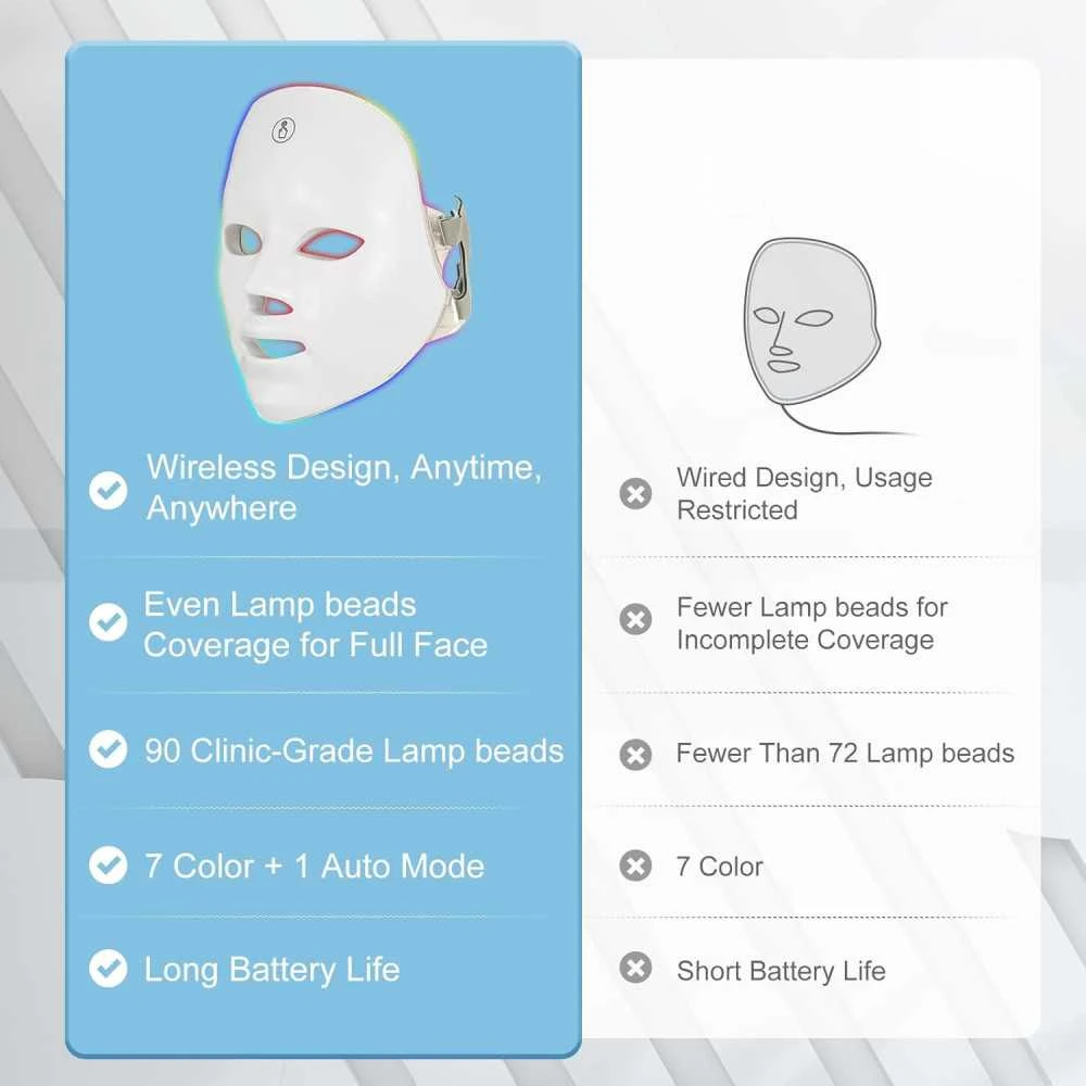 7-1 Customizable Modes for Personalized Care: Tailor your skincare to your specific needs with our face mask’s seven distinct light modes. After the eighth click, the colors will cycle automatically
