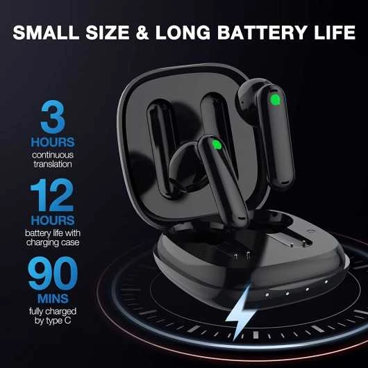 Ergonomic Lightweight Design and Ultra Battery Life: The Edge voice translators are 46% lighter than the last-gen wt2 plus translator earbuds and 33% smaller. It is suitable to sit snug in your ears for hours on end by adopting ergonomic design. WT2 Edge/W3 pocket translator supports three hours of nonstop translating time on a single charge. And a full 12 hours with the portable charging case, provide enough battery to power a full week of work or a short trip abroad on a single charge