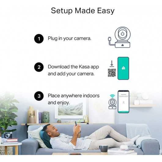 Kasa Spot Pan Tilt is a small security camera that can be placed on any flat surface to monitor everything that happens in your home. It has Wi-Fi connectivity and has an app that allows you to view or download recorded video, apply up to 4 custom activity zones to reduce false alarms.