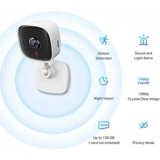 The Tapo C100 allows you to capture every detail with 1080p definition, it offers night vision with 850nm infrared lenses that supports automatic color switching filter in low light conditions, providing a clear and sharp image up to a distance of 9 meters. The camera offers horizontal and vertical coverage, ideal with a 105° field of view for real-time monitoring for any room in the house. It is suitable for staying connected with your child, the elderly and also your pets.