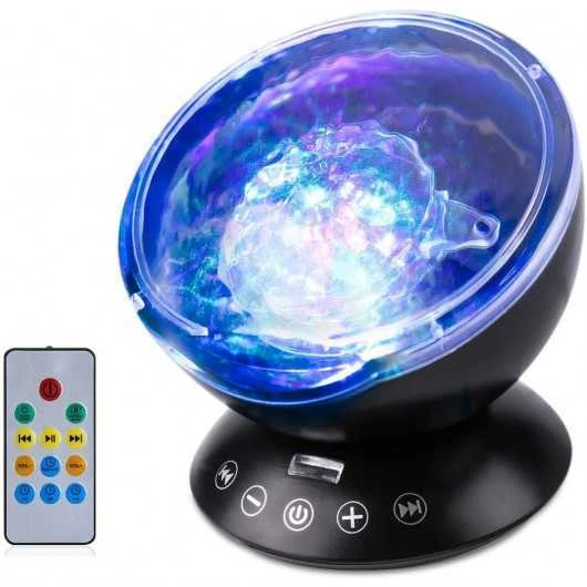 BUILT-IN MUSIC PLAYER AND SEA ENVIRONMENT SOUND: 4 types of ambient noise such as sea waves, nature and seagulls contrast with this indoor light projector, making people feel relaxed and comfortable. When you connect iPods, mobile phones, MP3 players and other music playback devices via Aux-In cable, you can choose your favourite music and enjoy these cool stereo speakers and the light show! Silent mode works.