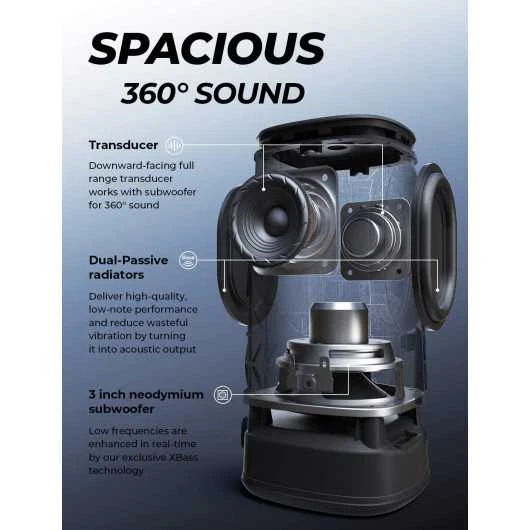 High Fidelity 360° Audio Quality: Big sound, big experience. Punching above its weight in volume and sound quality, the Tribit StormBox gives off a full, 360° sound unlike any other. Armed with dual-passive radiators for heavy-hitting low notes, it converts wasteful vibrations into acoustic output. No dead zones either, so everywhere is the right place to be when you’re listening to this speaker.