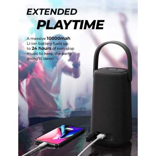 Extreme Battery Life: Nothing kills the party faster than a dead speaker. With a whopping high-capacity battery, the Tribit StormBox Pro can last up to an unbelievable 24hrs listening time. With that enormous battery, you can even charge other devices on it like your phone or your tablet.