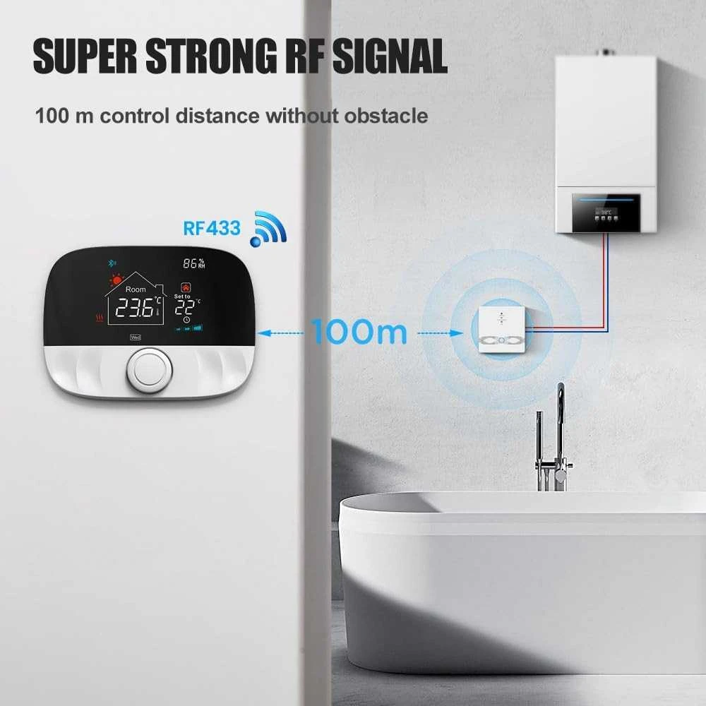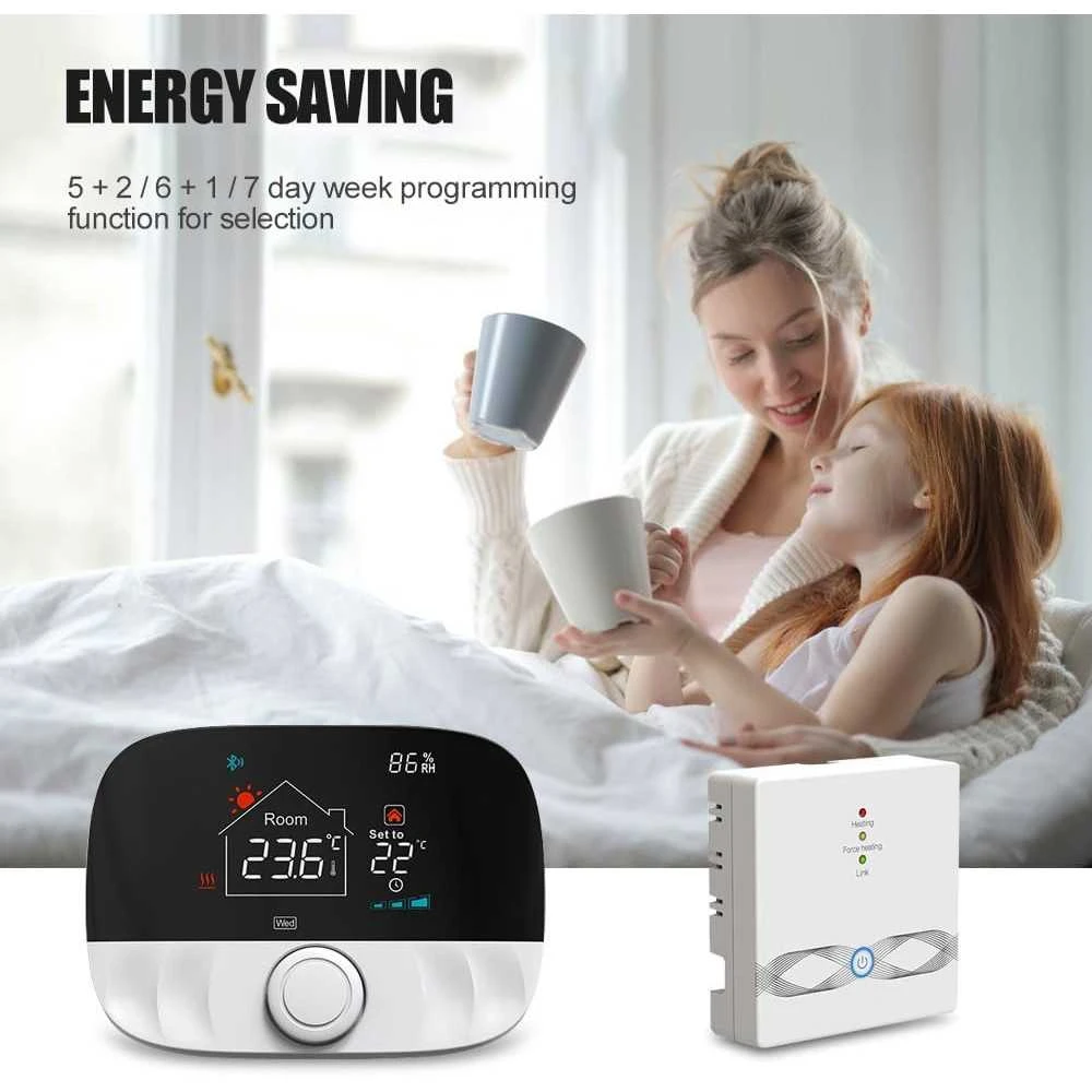 【Smart Energy Saving】 Whether you are at home or on the go, the wireless connected thermostat allows you to control the temperature of your home. When you set the desired temperature, the heater or air conditioner will automatically turn on or off to maintain a stable room temperature, thus ensuring comfort and saving energy. Wireless thermostats give you complete control over your heating system.