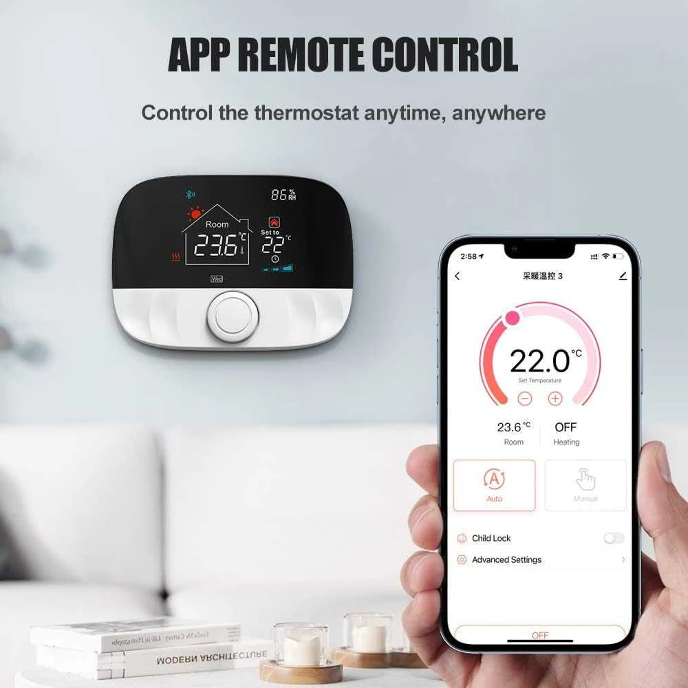 【Programmable Thermostat】Programmable 7 days a week, up to 6 time periods, the thermostat supports different temperature settings in 6 time modes each day, maximizing savings on utility and electricity bills. Built-in precision, automatic temperature collection, 0.5℃ accuracy. Make your life comfortable and convenient with weekly programming.