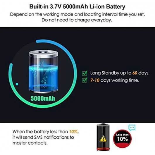 The TKSTAR TK905 allows you to track in real time with a positioning accuracy of up to 5 meters and a sensitivity of -159 dBm, using the GSM and GPRS network of your SIM card. It is a GPS tracker that allows you to automatically display the location information of all your vehicles, namely your car, your two wheels, your boat, truck or also freezers, containers and much more. It has a sensor that detects vibrations in order to be alerted if your vehicle has been moved, but also an overspeed sensor as soon as the vehicle exceeds the preset speed.