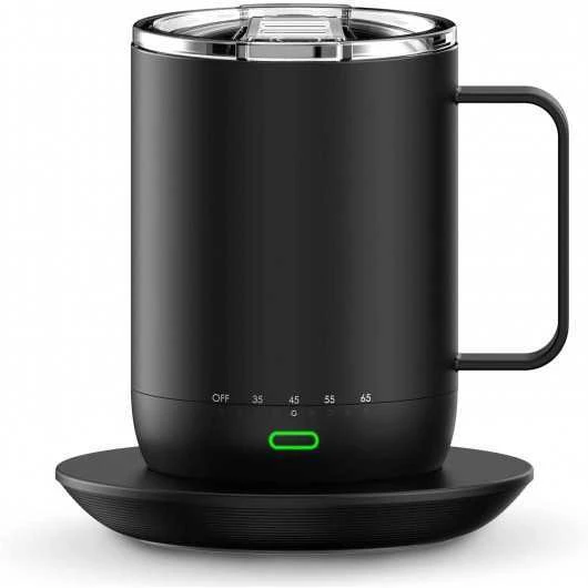 The device has LED indicators on the touch buttons that make it easy to choose the ideal temperature for your drink. It also has an application that is compatible on all Android or IOS devices and allows you to set the temperature between 35 to 65 degrees Celsius directly on your phone. It also has a light bar that indicates the status of the battery that lights up green for a full battery orange for a battery in charge and red to notify you of a low battery.