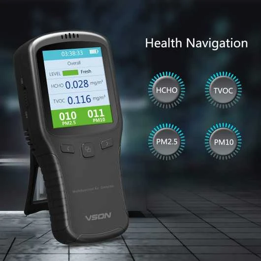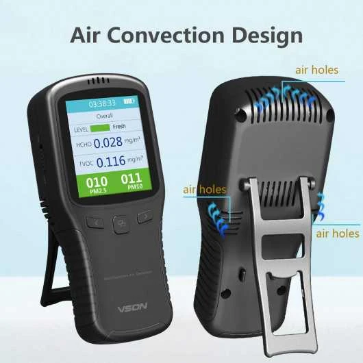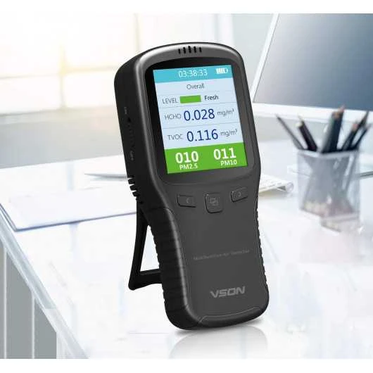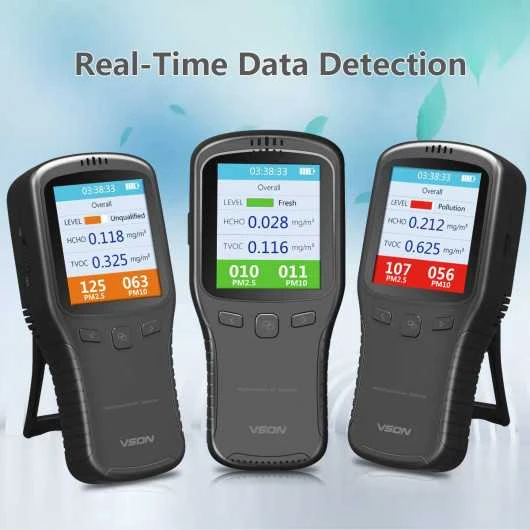 With the improvement of residents’ income and living standard, more and more people pay attention to the health and safety of living environment, among which formaldehyde and haze are the most concerned pollution factors. If you want to stay away from the environment with high formaldehyde concentration and severe haze, then you can choose our air quality monitor.This air quality detector with separate sensors can quickly and accurately detect the concentration of formaldehyde in the air. At the same time, it is multifunctional and can detect the concentration of TVOC, PM2.5 and PM10. This monitor has a built-in lithium battery and a USB charging interface while coming with a user manual and is easy to operate.While satisfying your needs for product features, this air quality monitor is not only simple and stylish, but also light and easy to carry, and can be used indoors and outdoors.