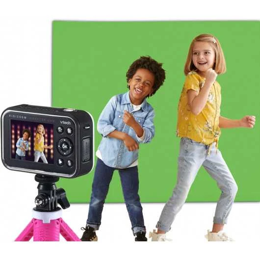 Versatile: The action camera swaps in 20+ animated backgrounds; get chased by a T-Rex, go to outer space or become invisible with the included green screen fabric
