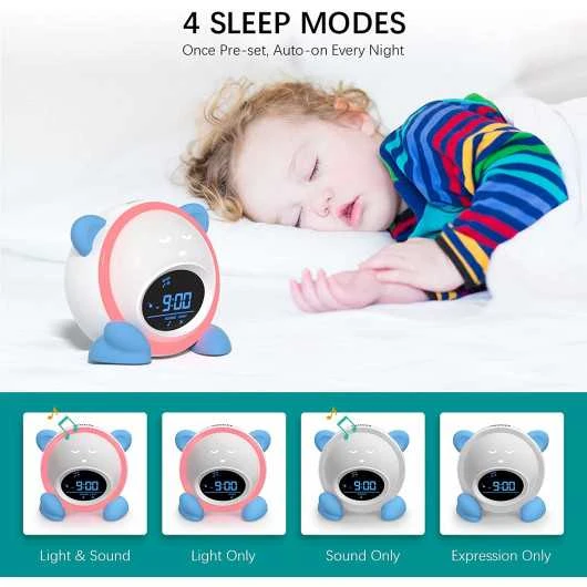 Little Teddi has animal-like ears, feet and different facial expressions, which make this sleep trainer clock cute and lively. By distinguishing its facial expression and light colors, kids know if it’s time to sleep or OK to wake. It also provide soft light and soothing sounds to help kids fall asleep. They all make sleep training easier and more enjoyable.