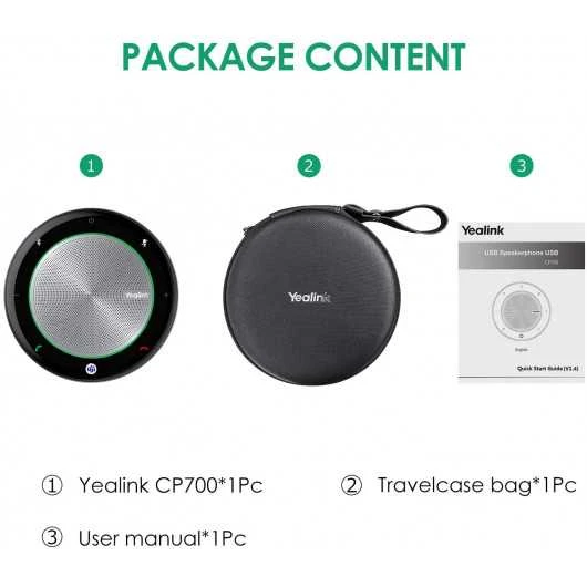 Yealink CP700 is a small portable speakerphone with Bluetooth connectivity and two microphones with noise reduction technology, echo cancellation and digital signal processing that captures and amplifies voice clearly to perfectly fit business meetings, online courses, video calls and more.