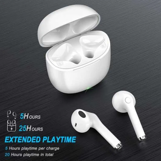 Great Battery Life – The wireless earbuds alone provide up to 5 hours of high-quality sound on a single charge, and the included charging case provides four additional charges for 25 hours of total playback.